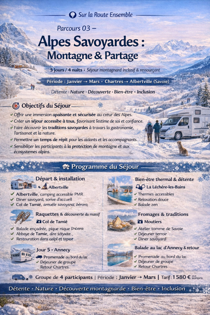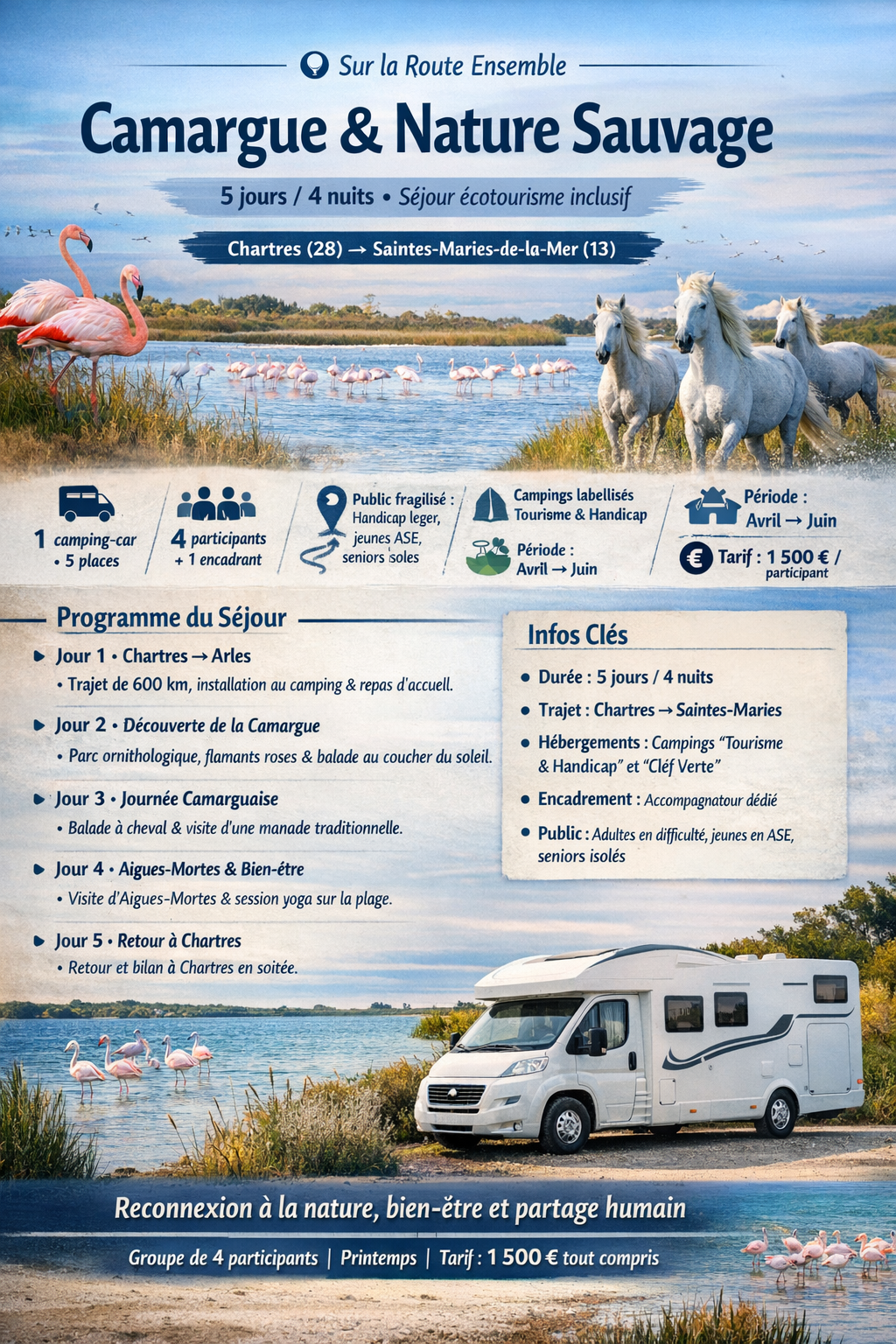 Découvrez nos séjours en camping-car conçus pour tous, alliant confort, convivialité et bienveillance.
