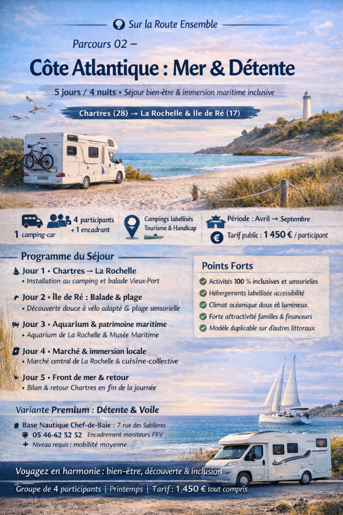 Découvrez nos voyages en camping-car de cinq jours, pensés pour être accessibles et adaptés à tous les profils dans un cadre chaleureux.